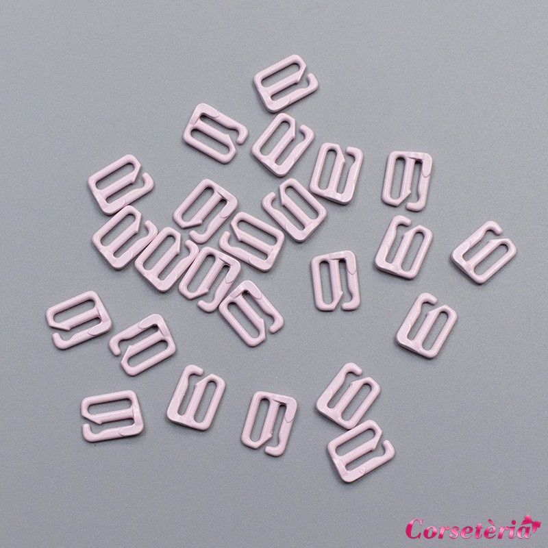 Металлический крючок-регулятор розового цвета (код 189 по карте LAUMA) для бретелей, ширина внутренней части 10 мм. Надежное покрытие, устойчивое к воде и поту.