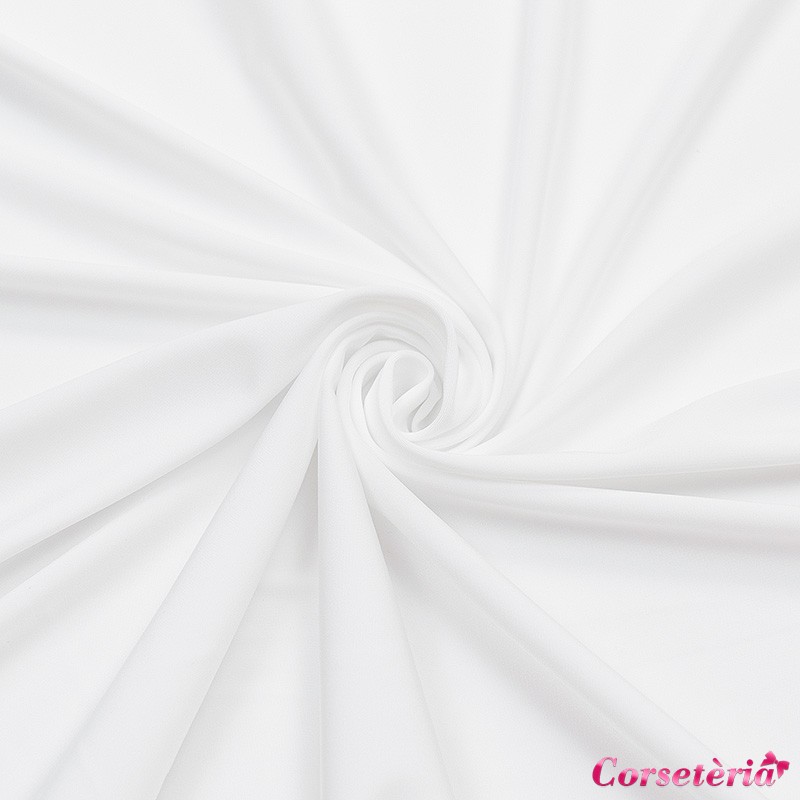 Гладкая, микрофибра средней плотности белого цвета. Материал слегка просвечивает, тянется в обоих направлениях, является упругим и прочным, подходит в качестве основного материала для изготовления нижнего белья.
