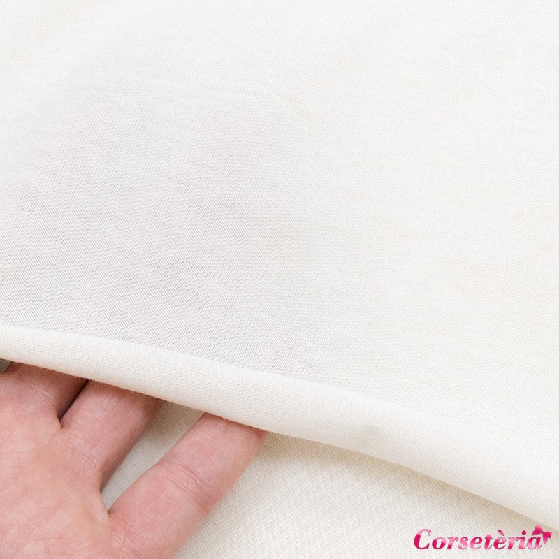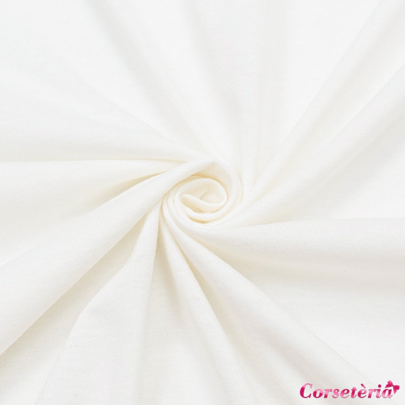 Тонкий трикотаж из 100% хлопка молочного оттенка - материал приятный к телу, слегка просвечивает, лучше всего подойдет для пошива изделий бельевой группы.
