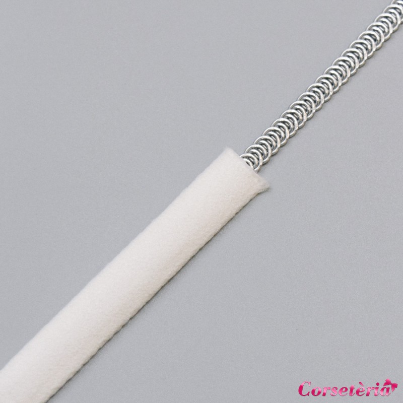 Плотный чехол молочного цвета из мягкого бархатистого материала для корсетных изделий шириной 10 мм, подходит для металлических и пластиковых косточек до 5 мм шириной. В прозрачном корсете может использоваться как декоративный элемент для отделки рельефов.