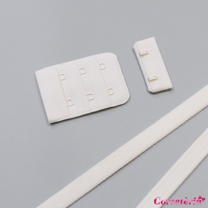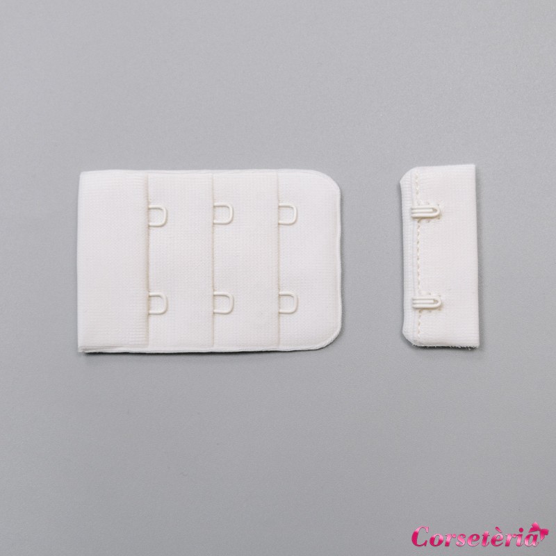 Застежка для бюстгальтера молочного цвета с крючками и петлями в 3 ряда из микрофибры, с закрытым мягким краем. Ширина 38 мм, длина - 56 мм.